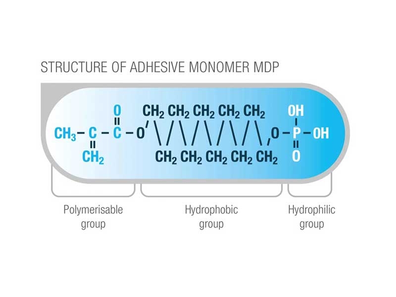 (10 Methacryloyloxydecylhydrogenphosphat), das aufgrund seiner besonderen Struktur und Eigenschaften überzeugte. Mit dem Original MDP-Monomer gelang es Kuraray als weltweit erstem Hersteller die Haftkraft zu Hydroxylapatit (HAp) grundlegend zu verbessern. Folgerichtig revolutionierte 1983 das erste adhäsive Befestigungskomposit PANAVIA™ EX basierend auf dem Original- MDP die Dentalwelt. Damit begann die Erfolgsgeschichte der Marke PANAVIA™, dem Synonym für zuverlässige und höchste Haftkraft. Neben der Fähigkeit sich mit Hydroxylapatit zu verbinden zeichnet sich unser Original-MDP auch durch eine überaus starke Haftung an Metall und Zirkonoxid aus. Die Ursache ? Ein seit über Jahren unerreichter Reinheitsgrad.